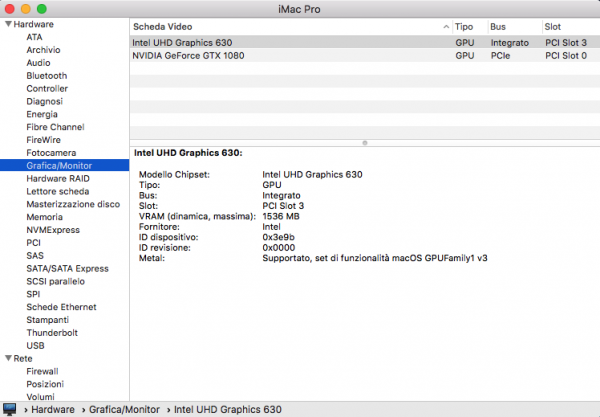 10. Ottima notizia! Vediamo però se ho capito bene il da farsi. Ok, metto SSDT generico di Gengik84 A questo punto, procedo come hai fatto tu qui: [code]SMBIOS iMacPro1,1 device ID -- 0X3E9B8086 ig-platform-id --0x3E9B0007 -wegoff -disablegfxfirmware [/code] Cioè devo cambiare SMBIOS, device ID, ig-platform-id come sopra?