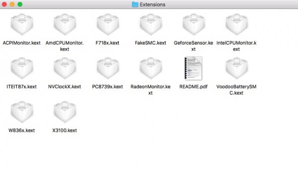 Fatto. Ho messo il kext corretto, cioè GeforceSensor.kext. Tutti gli altri non sono rilevanti per me. A parte ACPIMonitor.kext che abbinato al dsdt rileva velocità ventole. Vabbè non me ne importa. Tengo tutto così. empticons_thu