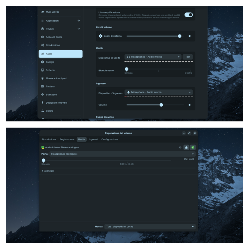 @Anto65 hackcheck mosta praticamente tutte le informazioni. @carlo_67 provato quelli e anche di più. mi sta venendo un dubbio. su linux mostra lo stesso problema, ma al contrario di osx, riesco a gestire le uscite con pavucontrol e avere audio nelle casse. allego foto e notare ingressi e uscite. praticamente invertite. in uscita ho cuffie (non collegate) in entrata internal speack. boh, tipo cavi montati al contrario 😐