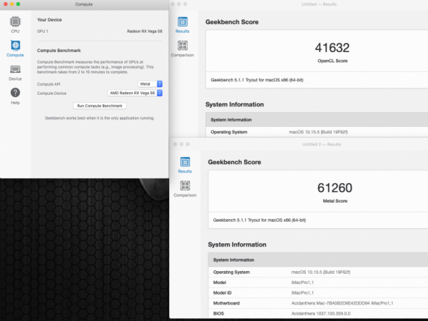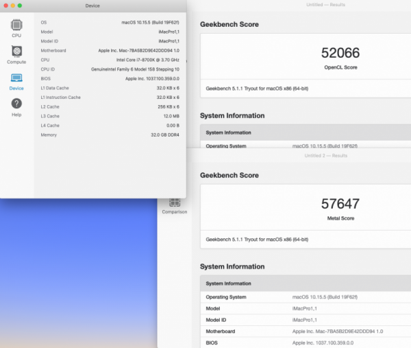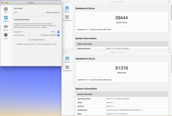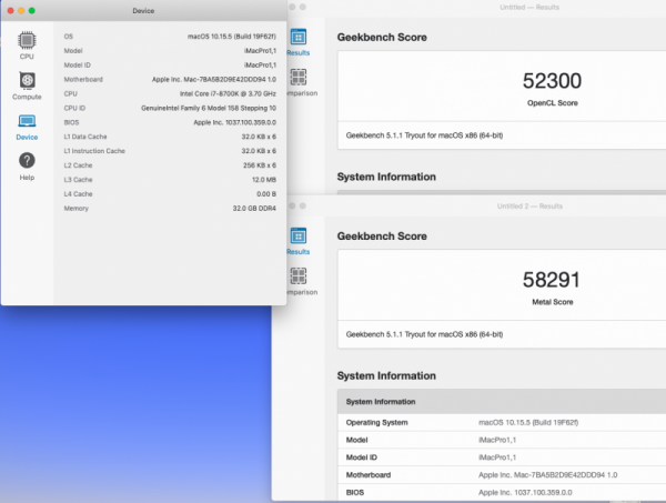 Ovviamente ognuno dovrà verificare se effettivamente nel proprio hack si ottengono benefici e migliori prestazioni mio hack 2 in firma Z370 + vega56 nano mojave prima dopo high sierra prima dopo Catalina prima dopo i risultati più interessanti sono stati ottenuti con mojave, in high sierra e catalina praticamente ininfluente RadeonBoost Con Catalina, eseguiti i medesimi bench avviando senza WEG, nel mio caso, non è cambiato assolutamente niente, quasi identici nei decimali