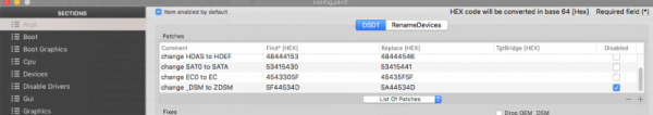 leggi meglio non va bene niente leggi per bene le FAQ che ho in firma, sono di aiuto per i principianti, sono messe apposta per evitare di dire mille e mila volte la stessa roba quando si dice: Unica patch richiesta in ACPI/DSDT Patches è la seguente Change _DSM to ZDSM Find: 5F44534D Repl: 5A44534D quale è la parte non comprensibile? di lasciare solo quella e togliere o disabilitare tutte le altre il resto è roba aggiuntiva nel caso sorgano altre problematiche, al momento non te ne interessare