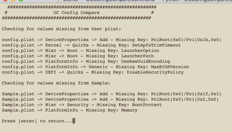 quindi apri i 2 plist config e sample, procedi, salvi poi pigi invio nel terminale e digiti 5 che esegui nuovamente il confronto