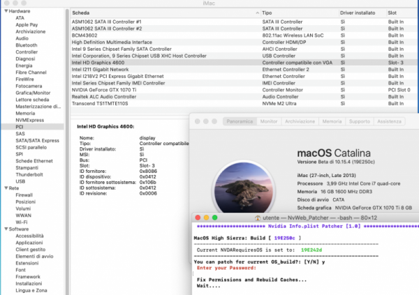 1. @KTC se ti riferisci alla nvidia, su mojave e catalina al max può essere usata per le codifiche, ad ogni aggiornamento i driver vanno allineati con nv_webpatcher per la visualizzazione a monitor uso la iGPU HD4600 a cui sono collegato in DVI-D con la 1070 e in HDMI con la HD4600 e switcho a seconda del macOS che uso