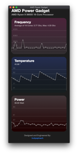 Ho provato una sacco di cose, e ne proverò sicuramente altre con l'evolversi dell'hack AMD, una che non avevo ancora testato era la combinazione del quirks DummyPowerManagement abbinato all'SSDT-Plug X AMD che avevo già creato, con anche AGPMInjector x iMacPro1,1 + VEGA56 (questi non è che serva poi chissà che) per chi non si vuole rileggere il thread nei vari punti dove affronto queste cose, veda qui https://github.com/khronokernel/Opencore-Vanilla-Desktop-Guide/blob/master/AMD/NullCPU-patch.md da me funziona la modifica dell'SSDT-Plug con C000, ma ho provato anche P000 ma con questi KP immediato il risultato è soddisfacente, è andato in stop una volta pure catalina (poi non si è ripresa dall'emozione 😄 ) boot ancora più leggermente veloce Prima riattiva per l'accesso dalla rete e abilita power nap non erano presenti, non che li usi ma evidentemente con le modifiche si sono attivati. ho abilitato SSDT-EC e da ioreg vedo che la periferica EC prima assente, poi è comparsa; ma non mi è chiaro se mi serve o meno. Ho anche abilitato SSDT-EC-USBX-AMD ma questi non riesco a determinare se è caricato, da quello che ho capito dovrebbero servire per una migliore gestione dell'alimentazione delle USB. Con entrambi questi SSDT non cambiano prestazioni e non sono sicuro che mi servano... allego ioreg. Ora con AMD Power Gadget funzionante su High Sierra, Mojave e Catalina è possibile vedere come lavora la CPU, temperatura e consumi e il tutto pare ottimale MacPro3950x.ioreg.zip