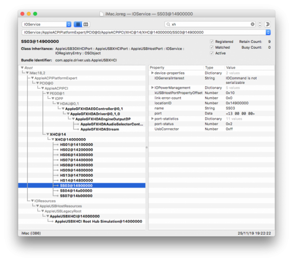 da tuo ioreg, nel tuo caso le USB da disabilitare sono: HS02 HS05 HS06 HS07 HS08 SS02 quindi come da guida, con MaciASL vai a disabilitarle nell'SSDT-DisableUSB-Haswell-9Series.dsl.zip -