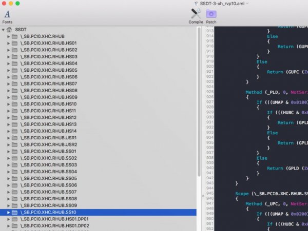 in questo hack mi serve un aiutino/dritta dal boss @Gengik84 non riesco capire bene come muovermi nell'ssdt per le usb di questa mobo se ho fatto bene con le pendrive e letto bene ioreg, dovrebbero essere attive le: RP01 HS01, 02, 04, 05, 06 SS01, 04, 05, 06 quindi inutilizzate le: HS03, 07, 08, 09, 10, 11, 12, 14 SS02, 03, 07, 08, 09, 10 USR1 - USR2 ma da macials vedendo come è sviluppato xh_rvp10 non mi ci raccapezzo molto per esempio, devo mettere zero in tutte le HS03 che trovo in giro? iMac-Z170_USB_MAPPING.ioreg.zip