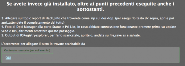 8. nel tuo config non avevi il flag su nvidiaweb in system parametres ti ho fatto un nuovo config più un'altro con scritto install in caso di problemi con gli aggiornamenti, da selezionare dalla GUI di clover per la NVRAM ti ho mantenuto la EFI in emulazione PS: però è strano... ce l'ho nativa nella mia asrock Z68... si vede che il problema è come spesso accade, la gigabyte :shock: