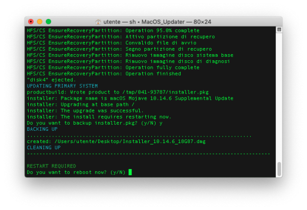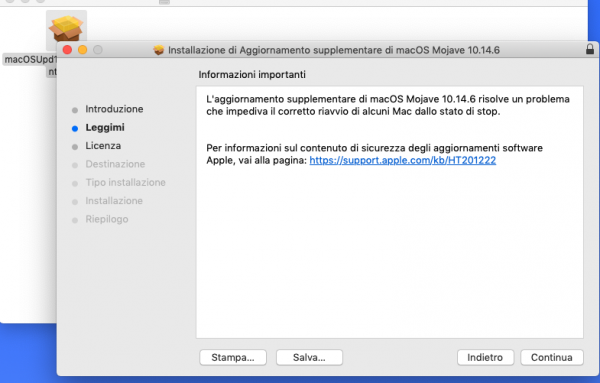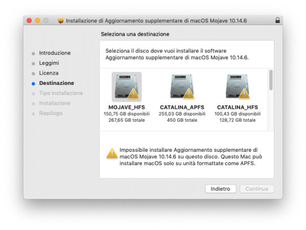 hack 2 mojave APFS con aggiornamento software si scaricava l'aggiornamento, si riavviava NON compariva l'icona in più relativa all'installazione del nuovo aggiornamento, partiva con la sua solita, pareva che installasse ed infine quando arrivava al desktop aggiornamento non riuscito... così per 2 volte... poi mi sono rotto ho mandato in esecuzione l'ultimo installer completo, al termine della reinstallazione su se stesso rieseguito l'aggiornamento e questa volta è andato tutto correttamente...