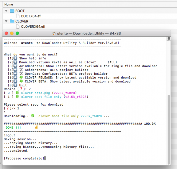 rimembro un po' a tutti e pure a me che con l'app downloader utility https://www.macos86.it/viewtopic.php?f=51&t=12">viewtopic.php?f=51&t=12">https://www.macos86.it/viewtopic.php?f=51&t=12 tra le svariate cose che può fare per noi, vi è anche quell di scaricare Clover completo o i soli file di avvio... comodo facile indolore che si vuole di più emoticon_thanks