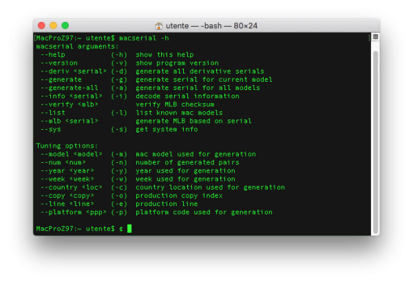 Allora devo capire come usare macserial, che francamente quando ci guardai, non ci capii una mazza PS: comunque volevo usare quelli che ho ora e non generarne altri Ha scritto dopo 11 minuti 34 secondi: @fabiosun PS: comunque anche se sono gnucco, e odio i terminali, ho copiato macserial in urs/bin e scritto sul terminale macserial... et voilà... ;)
