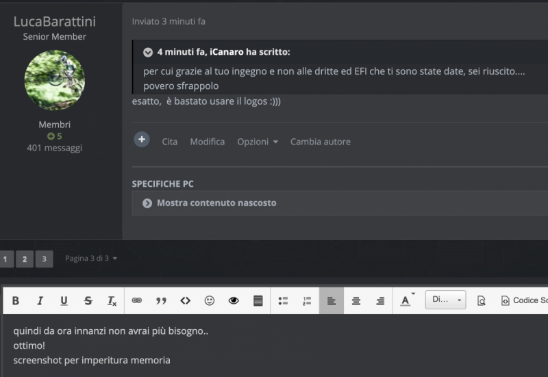 per cui grazie al tuo ingegno e non alle dritte ed EFI che ti sono state date, sei riuscito.... povero sfrappolo