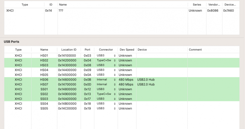 Salve a tutti, ho provato a fare un eri, un copiando e cercando di capire come fare. Ho fatto la mappa usb da windows e creando la kext utbmap.kext. me le legge tutte. non ho mappato le usb-c farò. Tecnicamente mi funziona tutto eccetto BT e Airport. Potreste dare un occhio alla mia efi, vedere cosa posso migliorare e aiutarmi a capire come sistemare BT? Grazie @Lorys89 @Gengik84 ps eri troppo grande, metto questo link https://pico.pcnoproblem.cloud/-YHYNs3ebH6/EFI.zip UTBMap.kext.zip