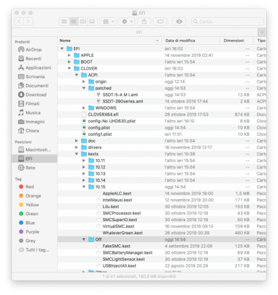 Allora.... Dopo tante prove, sono riuscito a trovare una configurazione stabile che mi avvia il computer quindi, allego la EFI ma, la scheda video integrata UHD-630 deve essere configurata xche ha solo 14mb e poi, vorrei il Vostro parere per raffinare le impostazioni, sicuramente rozze, che ho fatto nella EFI Grazie e scusate se rompo :-)) EFI - OK.zip