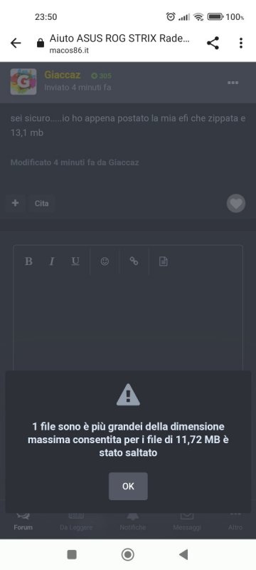 Se mi dai una mail te la mando tramite email qui non la fa postare ho provato tramite PC e tramite telefono ed è uguale dice sempre il file e superiore infatti è 13,43mb