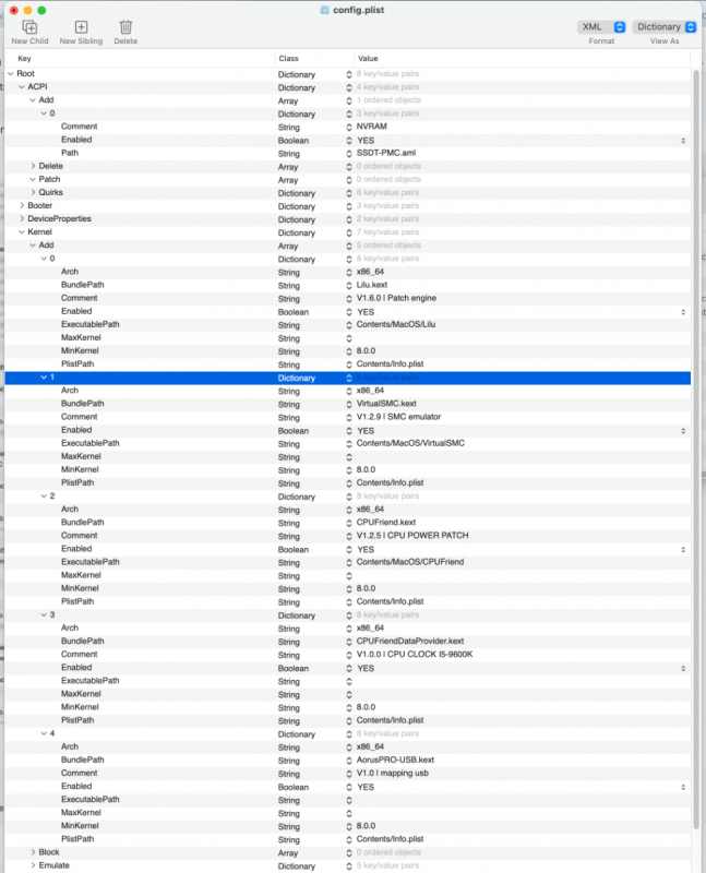 "per funzionare"... kext: Lilu... VirtualSMC... Mappatura... ssdt: pmc per la nvram... patch: ...non pervenute xD --- vinco io xD