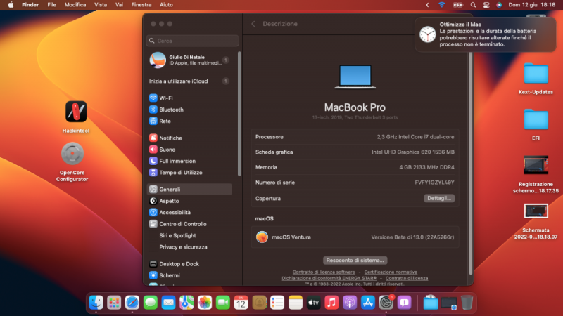 Ciao ragazzi, ho un problema, anzi 2 con quello di iCloud, mi sono informato e ho visto che bisogna avere la scheda di rete interna funzionante, quindi ho deciso di riprovare a farla funzionare, quindi prima di tutto ho fatto un downgrade a Mac OS BIG SUR 11.6.1 per provare a patchare la scheda di rete essendo che molta gente diceva che con Big Sur dovrebbero andare, ho installato i Kext trovati da un profilo GitHub, tutto sembra andare ovvero sia Hackintool che il sistema mi rileva la scheda di rete solo che non riesce a connettersi, ovvero non trova le reti e Hackintool mi rileva la scheda di rete come "en4"