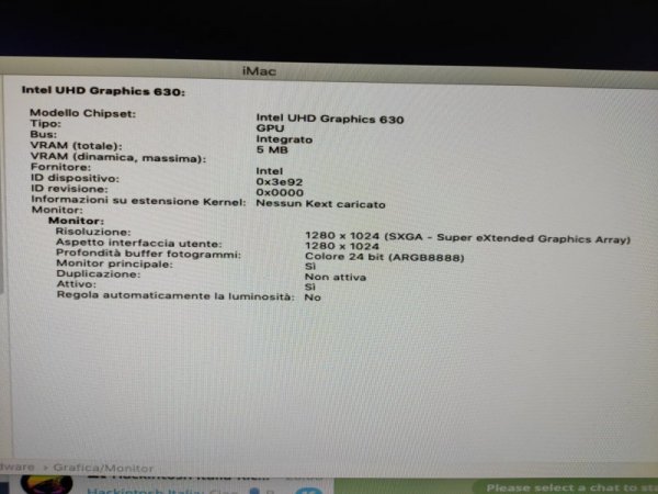 La 1a va ma la 3 fa reboot. La velocità ci sarebbe anche cioè non va a scatti l'unico problema è la spoporzione che fa vedere tutto ovale. Allego foto e ioreg di 1a da notare i soli 5mb per la scheda video e la risoluzione unica 1280x1024 iMac di Rachele1a.zip