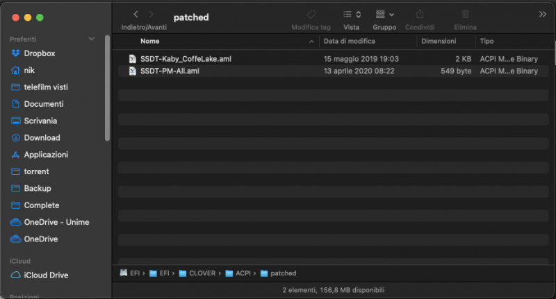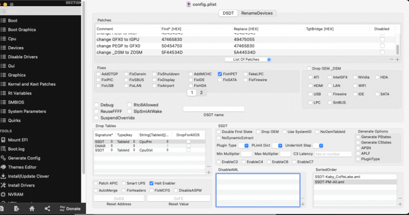 Allora ho provato ad eliminare il DSDT.aml da patched copiando i rispettivi SSD scaricati dalla tua firma nella guida, ma purtroppo non va avanti, si blocca nel boot...ti allego immagini...sicuramente non ho cpt qualche passaggio...😅 Sinceramente credevo che mettendoli nella cartella PATCHED li prendesse in automatico, invece dobbiamo inserirle (manualmente) con cloverconfigurator (forse) 😄
