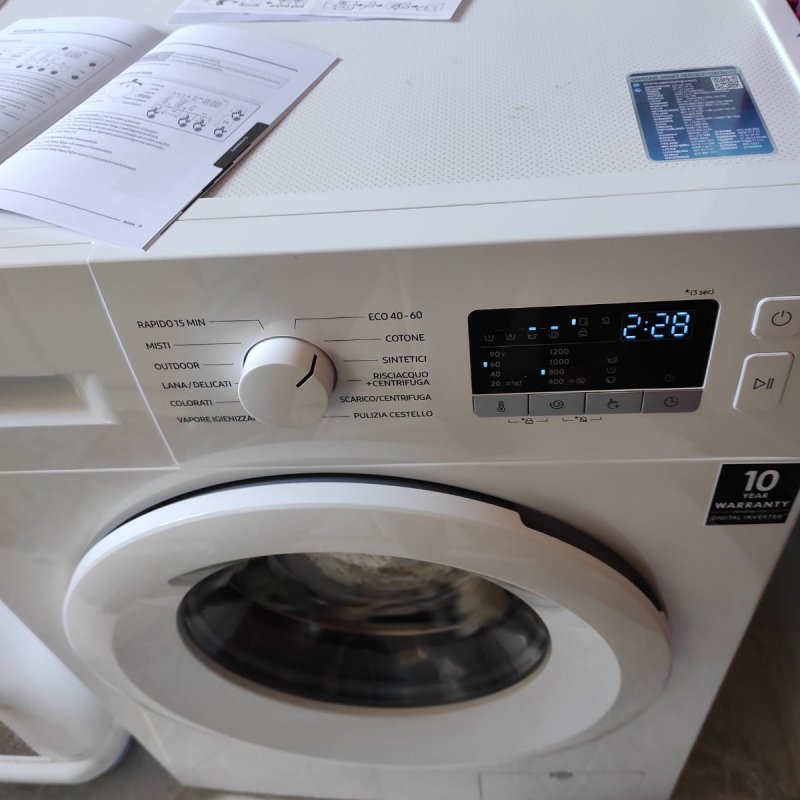 A me serviva una semplice perchè mia mamma non ha dimestichezza con le cose moderne, vediamo, non vedo punta schiuma nell'oblò, speriamo che lavi. SI anche questa è Samsung.