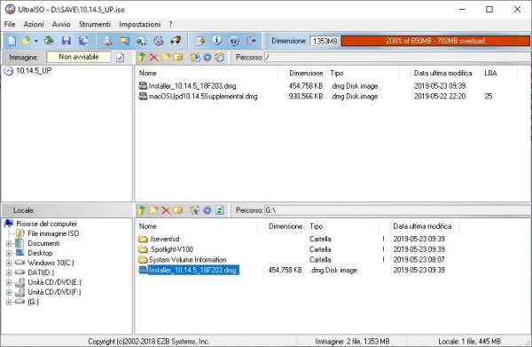 Si potesse saltare questo controllo, sarebbe meglio, guarda questa raffinatezza, da una VM W10 faccio l'Immagine 10.14.5_Update dal disco Virtuale OS X che poi riverso in Rete...