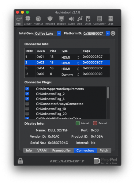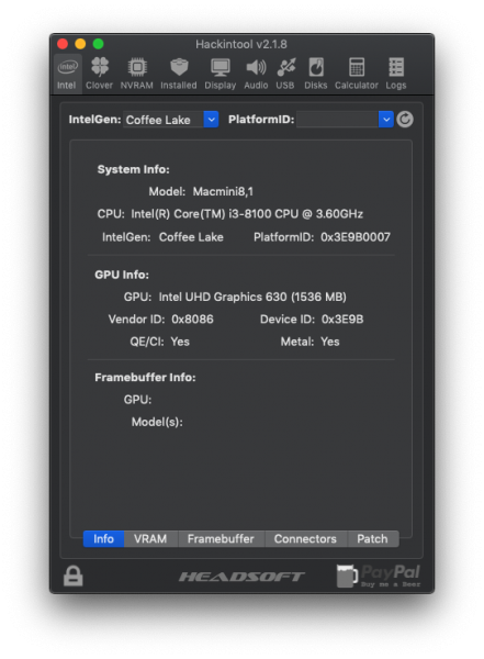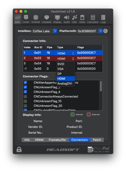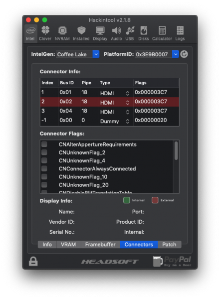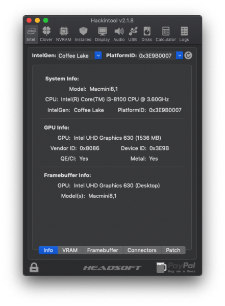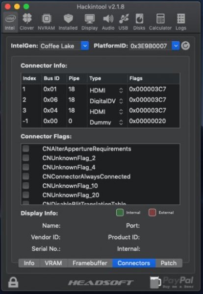 Test Uscite Video: Funzionano tutte e TRE, HDMI e DVI in fo non mi dice il Tipo di Connessione - Stiamo usando Device ID: 0x3E9B, che è del Mobile e non Desktop... Ha scritto dopo 57 minuti 12 secondi: Ora sono passato ad OsxAptioFixDrv-64.efi, sembra che non ci sono problemi