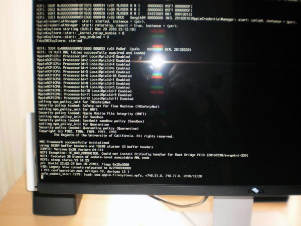 Eccola, appena accesa emoticon_sorriso … - Volevo avviarla con HS e HD630, ma probabilmente ho la configurazione nel config sbagliata, si blocca su apfs module start…