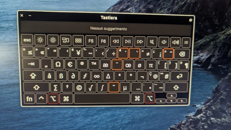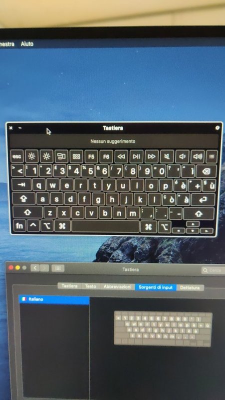 Ciao ragazzi. Come da titolo ho un problema con la tastiera. Adesso vi spiego tutto 😂 Non so se vi ricordate ma mi ero approcciato al mondo degli hackintosh e avevo aperto questo topic: Poiché non sono una persona normale e tranquilla XD ho fatto un aggiornamento bios all'ultima versione di novembre. Questo ha comportato che opencore 0.5.5 non facesse più fare il boot al mac. Così di buona lena ho aggiornato OpenCore alla versione 0.6.3. Ho completamente eliminato la vecchia EFI (ho tenuto SSDT-EC che mi ero buildato prima e i numeri di serie) e l'ho ricreata seguendo QUESTA guida. Senza non pochi problemi (per errore ho persino eliminato la EFI di Windows che poi ho ripristinato con diskpart) sono riuscito ad avviare il mac, e ho cercato di ritagliare OpenCore secondo le esigenze del mio hardware. Ho fatto anche un controllo del plist qui: https://opencore.slowgeek.com/ Ora tutto funziona tranne che la tastiera. O meglio mi viene riconosciuta una tastiera che non è la mia. Un pò di info che possono essere utili alla mia risoluzione del problema: Monto Catalina 10.15.3 Con la versione di OpenCore precedente la tastiera veniva letta normalmente. Ho una MX Keys della Logitech, anche installando il programma della logitech la tastiera non viene riconosciuta come italiana prev-lang:kbd già l'ho modificato sia con l'hex in data sia con it in string il mio Hardware è in firma 🙂 Allego un'immagine della tastiera (a schermo) che riconosce: Come vedete riconosce una tastiera compatta (la mia è estesa) e non c'è la chiocciola. Allego la mia EFI EFI.zip Alcune domande: La versione 0.6.4 se non erro è in beta per Bigsur, corretto? Bigsur è più stabile di catalina?