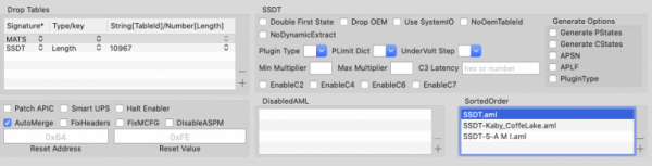 Perdona ma ho letto il post ed avevo seguito quello che gengik aveva suggerito creandomi con SSDTPRGen ed il comando -turbo un SSDT personalizzato per la mia CPU e per la giusta frequenza di overclock! A questo punto si trattava come da istruzioni di droppare la giusta tabella ACPI originale ed era quella la mia richiesta ma penso di averla trovata, dovrebbe essere la SSDT-6-A M I. Procedo e faccio sapere se funziona.