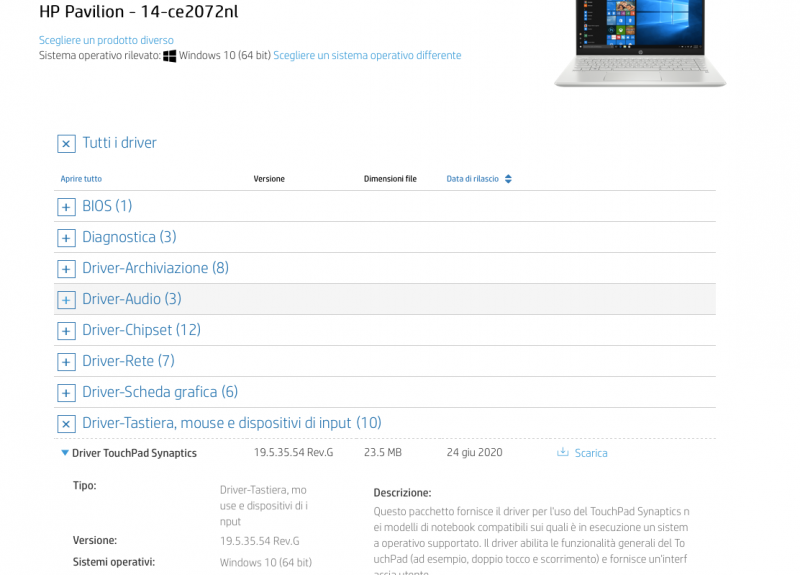 https://github.com/VoodooSMBus/VoodooRMI/releases/download/1.3.3/VoodooRMI-1.3.3-Release.zip. leggevo che monta un TouchPad Synaptics proverei queste ma senza il plugin rmi i2c che probabilmente il tuo non è sotto i2c.