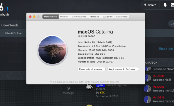 7. Ciao a tutti, sono nuovo del forum, volevo chiedere aiuto a voi molto più esperti di me, ho appena installato Catalina 10.15.4 su una Gigabyte z270x + i7 7700k + xfx rx 580 sembrerebbe funzionare tutto abbastanza bene ma penso di non avere l'accelerazione grafica attiva perché la dock non ha la trasparenza, potreste gentilmente essermi di aiuto. Grazie in anticipo a tutti quanti...