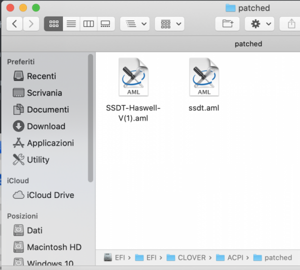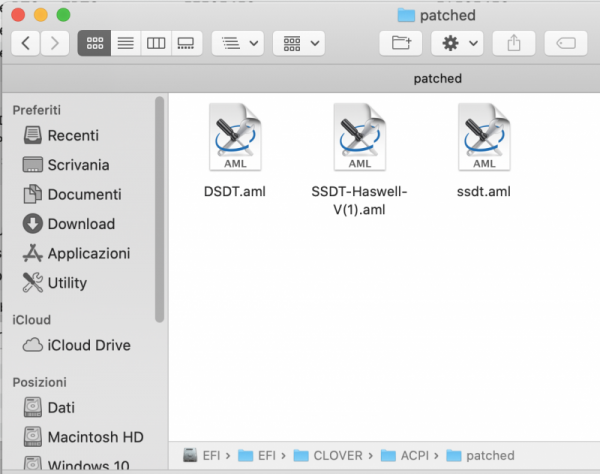 12. Allora ragazzi spero di aver capito cosa dovevo fare. Ho fatto questo: Tramite Clover Configurator ho messo le patches nel config.plist come in foto ho copiato il file SSDT-Haswell-V(1).aml all'interno della cartella EFI/CLOVER/ACPI/patched come in foto Il sistema parte regolarmente e tutto funziona ma non capisco se ne ho trovato giovamento o meno. Come faccio a verificare? PS: il file ssdt.aml all'interno di EFI/CLOVER/ACPI/patched va tolto o no?