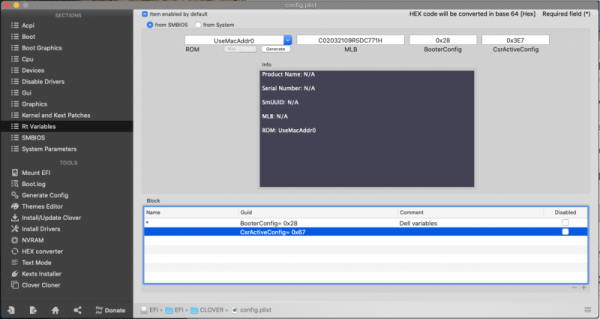 se ho inserito bene le Rt Variables (e se sono necessarie per High Sierra) al boot mi si ferma End Randomseed https://pasteboard.co/J3iLRXm.jpg ed il sistema si freezza perché anche premendo Caps Lock non si accende il led sulla tastiera.. ehmmm.. dopo aver completato la guida su windows non vedo più la partizione EFI.. "Apri" da Gestione Disco di Windows è grigio..