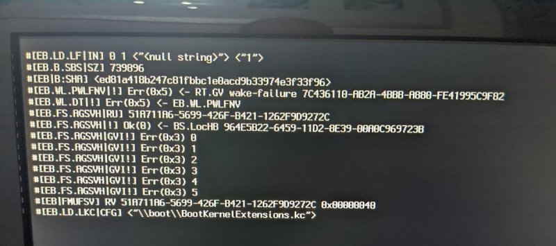 8. Ciao grazie per l'aiuto, mi spiego meglio hai ragione. Ho fatto partire l'ultimo aggiornamento dopo il riavvio si è creata la partizione di installazione, ma appena la faccio partire dal bootloader mi si pianta sulla mela, ho fatto una foto... quella sotto. Per quanto riguarda smbios, mi ricordo che non so con quale versione mi dava problemi col 19,2 quidi misi il 19,1 ed è rimasto così da allora. Ho proavato la tua efi ma da lo stesso errore.