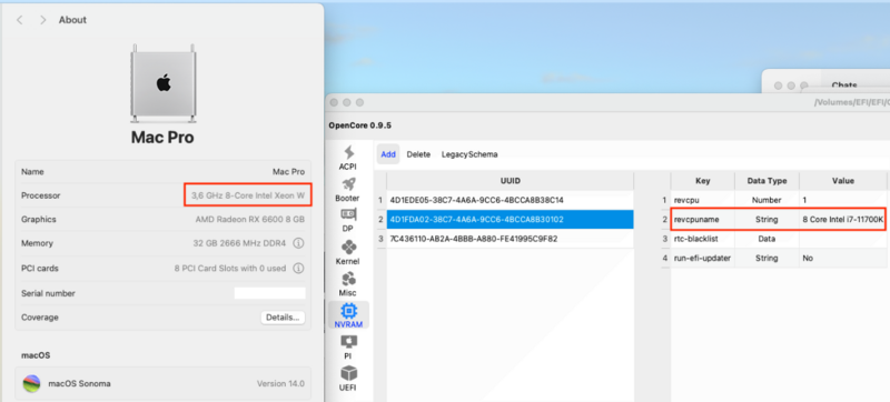 Che strano... Aggiornato a Sonoma RC2 già da qualche giorno (la stessa uscita stasera) Noto ora che non mi legge correttamente il nome del processore.... che può essere? Edit: che sia l'uso di OCLP per far funzionare la wifi, airdrop etc? Edit2: risolto con bootarg: revpatch=cpuname