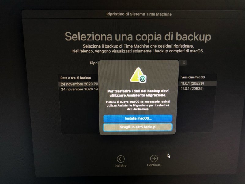 Qualcuno ha provato a ripristinare completamente il sistema con Time Machine? Io ho provato con smb, con afp e con disco esterno, stesso risultato: mi dice di non poterlo fare ma di reinstallare ed eseguire "assistente migrazione". Ora mi chiedo: è normale? E' una caratteristica di Big Sur, o un problema nel hack?