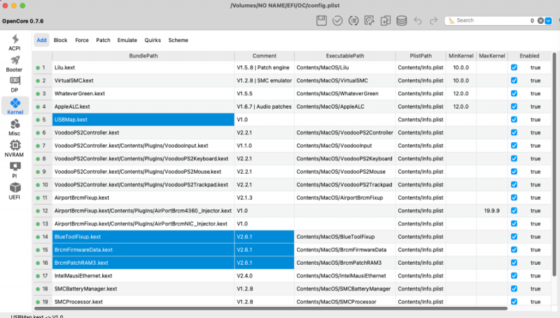 Ciao a tutti, queste feste ho aggiornato a Monterey 12.1 e seguendo le varie guide e aggiornamenti dei Kext ho fatto funzionare tutto meno che il bluetooth. Ho già sostituito il vecchio BluetoothInject con il BluetootFixup e rimappato le porte USB per mettere quella della scheda in internal. Ma mentre il wifi funziona il bt non va. O meglio sembra attivo ma non fa nè paring ne i dispositivi si connettono, riesce però a vare il discovery: qui la situazione in reconto sistema mentre in allegato trovate il systemlog che non so ancora interpretare bene alla ricerca di errori. Avete qualche consiglio? avete risolto già un problema simile? Grazie systemlog.log.zip