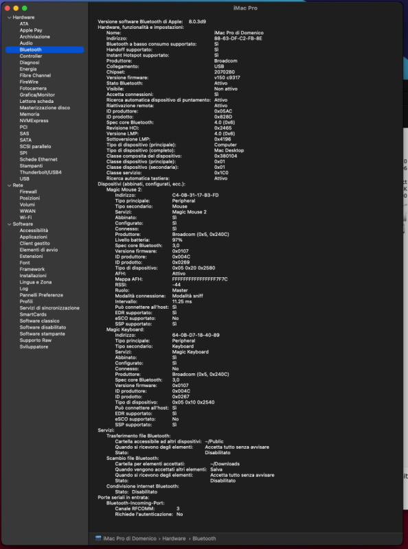 bluetooth: MQUPIN BCM94360CD scheda wireless AC1750 5G non riconosciuta su monterey, su bigsur invece si. Qualcuno sarebbe cosi' gentile mda aiutarmi? grazie