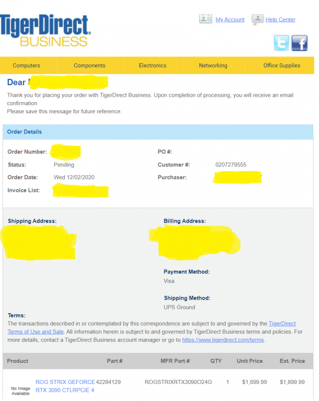 I would if I can find the 6900 at MSRP. I think it will be 2K at least by scalpers - not willing to pay that much. I think I could resell the 3090 for 2400 based on how much these Asus boards go for on ebay (they are top overclockers) but I don't want to be a scalper. Let's see if I even get it as I got the confirmation but it's another story if it will ship. I found it on TigerDirect - saw at least a couple of 3090s in stock there the past week and they were in stock for hours - both EVGA models. Worthwhile checking this site every few hours. Fingers crossed - feel like I won the lottery lol.