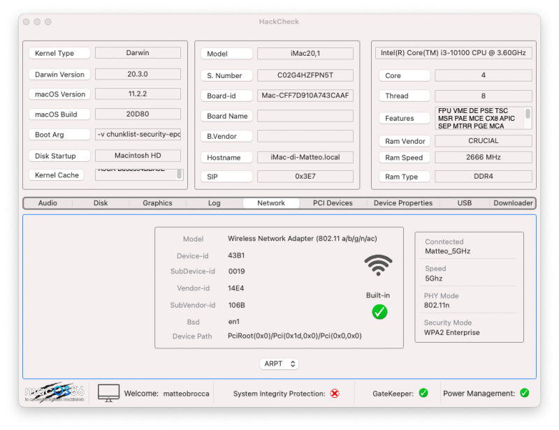 iMac di Matteo.ioreg.zipconfig.plist.zip una domanda: ma visto che con BS hanno tolto il kext AirPortBrcm4360.kext ed il mio wifi funziona con quello, potrebbe essere questo il motivo che no va più?