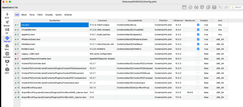 Ok grazie ti allego l'ultimo log di sistema Quali kext da rivedere? Grazie opencore-2022-09-07-162013.txt.zip