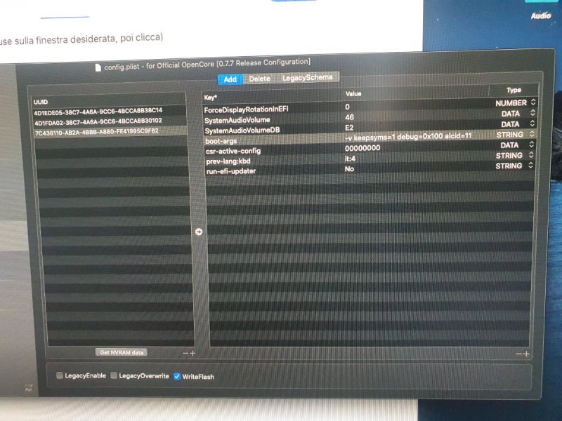 Si l ho provata, per intenderci: - ho aperto Clover Configurator - ho montato la partizione dove sta la cartella EFI - ho cancellato la vecchia e l ho sostituita con la tua - Ho aperto propertree ed ho modificato la stringa da te consigliata ora ti metto l immagine che mi hai chiesto.