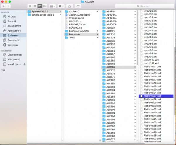Comunque se l'audio in generale ti funziona correttamente anche con questo layout puoi lasciarlo così....Ora non ho tempo, ma ti posterò la procedura per modificare Apple ALC....E' un pò macchinosa ( per me che non sono un esperto di Hack) devi avere installato Xcode che ti servirà per ricompilare AppleALC a lavoro ultimato se non c'è l'hai ti consiglio di installarlo.