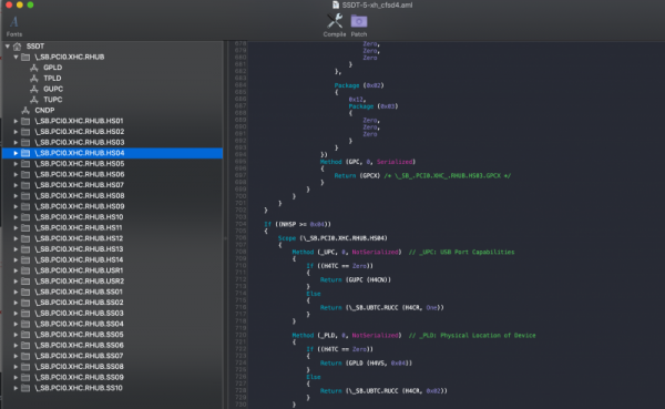 Scusa Gengik ma come lo modifico ? ci sono if ed else. un piccolo dubbio ma se la porto è usb 3.0 e metto uan 2.0 è hs ma se mettessi una usb (che non ho) 3.0 sarebbe sempre la stessa porta o il corrispettivo ur o ss ? ho estrapolato il ssdt è vorrei mettere off le porte che non mi servono.
