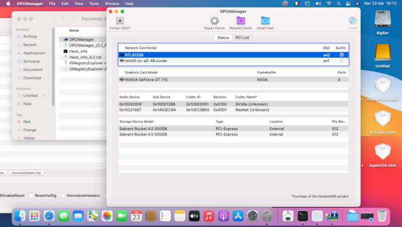 Sono riuscito, solo grazie a Canaro, ad installare Big Sur sulla mia build, ma ho ancora qualcosa da mettere a punto. Il bluetooth non funziona, non riconosce l'hardware, ho caricato i kext IntelBluetoothFirmware e l'injector, ma niente. Poi mi succede un'altra cosa strana, l'audio è riconosciuto, non riesco a capire perché non si sente niente dalle casse, cuffie, ho provato di tutto, cambiare jack, cambiare uscita, ma niente. Idee?