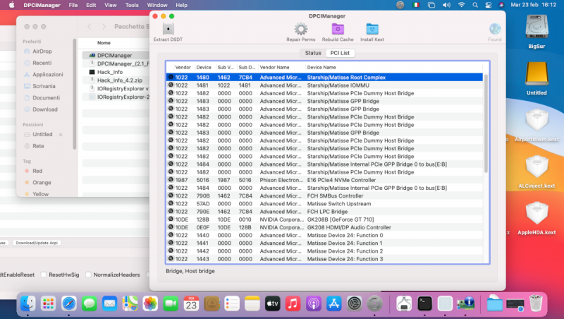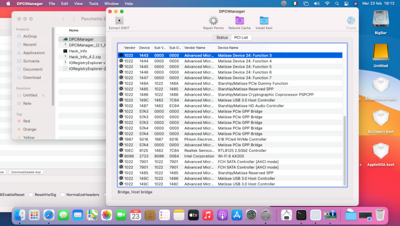 Prima funzionavano tutte le porte, ma ho aggiornato alla 11.3 e ora ne funzionano solo alcune. Tastiera è mouse prima erano collegati sulle 2.0 della mobo ora per farli funzionare li devo collegare davanti, sul case, 3.0 dietro il case non funzionano, davanti si. Ma nelle porte dietro tastiera e mouse non vengono riconosciuti in nessuna porta, 'nzomma è un po un casino. Ho provato a leggere il post sulla mappatura porte ma non c'ho capito niente ed ho visto un post di chi come me si trova in questa situazione, che per fortuna, ha risolto, ma non riesco a risolvere allo stesso modo, forse perché ho opencore. Perché con big sur 11.2 andava da dio tutto? Come posso risolvere? ACPI.zip config.plist.zip