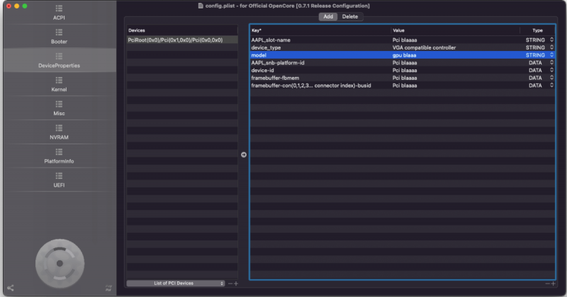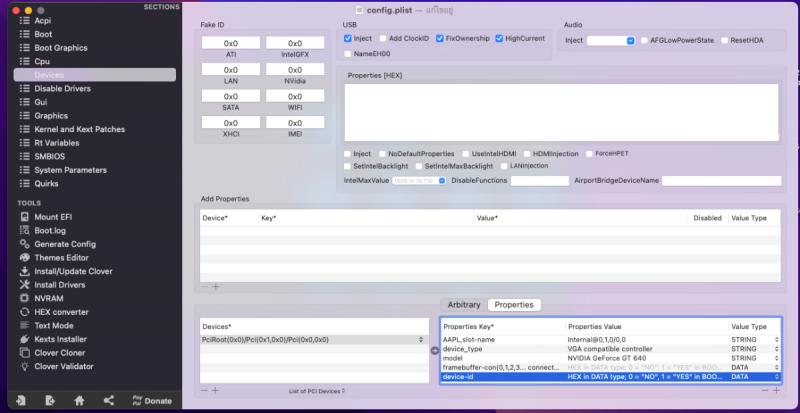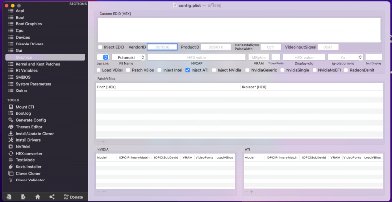 Device (PEGP) { Name (_ADR, Zero) // _ADR: Address Name (_SUN, One) // _SUN: Slot User Number Method (_DSM, 4, NotSerialized) // _DSM: Device-Specific Method { If ((Arg2 == Zero)) { Return (Buffer (One) { 0x03 // . }) } Return (Package (0x1E) { "AAPL,slot-name", Buffer (0x07) { "PCIex0" }, "@0,VRAM,memsize", Buffer (0x08) { 0x00, 0x00, 0x00, 0x00, 0x00, 0x00, 0x00, 0x80 // ........ }, "@0,name", Buffer (0x1A) { "ATY,Futomaki" }, "@1,name", Buffer (0x1A) { "ATY,Futomaki" }, "@2,name", Buffer (0x1A) { "ATY,Futomaki" }, "@3,name", Buffer (0x1A) { "ATY,Futomaki" }, "ATY,Card#", Buffer (0x14) { "1682-3001" }, "ATY,Copyright", Buffer (0x33) { "(C) 1988-2010, AMD Technologies Inc." }, "ATY,Rom#", Buffer (0x0F) { "AMD Tahiti" }, "ATY,VendorID", Buffer (0x04) { 0x02, 0x10, 0x00, 0x00 // .... }, "ATY,DeviceID", Buffer (0x04) { 0x98, 0x67, 0x00, 0x00 // .g.. }, "model", Buffer (0x17) { "AMD XFX Radeon R9 280X" }, "hda-gfx", Buffer (0x0A) { "onboard-2" } }) Ciao come questo? trova un modo per cambiarlo come questo? o sarà come questo trifoglio