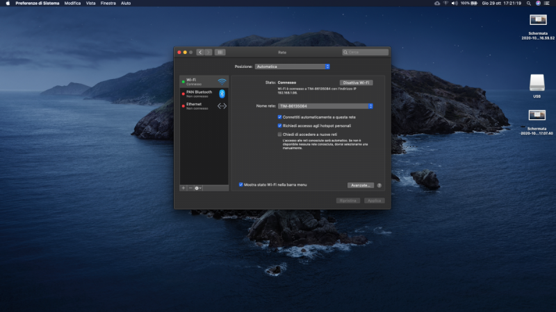 Scusate il ritardo ma sono stato un po' impegnato in questi giorni. Questa mattina ho deciso di installare nuovamente il file per abilitare la Pennetta usb per il wifi, ma come ho acceso il pc si è collegato normalmente al wifi 😄 Non so per quale motivo dato che non ho cambiato nessuna impostazione rispetto alle prove di giovedì sera, inoltre le impostazioni sono su DHCP. Grazie mille per l'aiuto