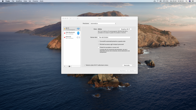 Allora ho disinstallato il programma per il dongle Wi-Fi. Ho sostituito il file config.plist e adesso la luminosità è modificabile. Il Wi-Fi da sempre lo stesso problema, trova la linea di casa, si connette ma non funziona. Compare un punto esclamativo sull’icona del Wi-Fi