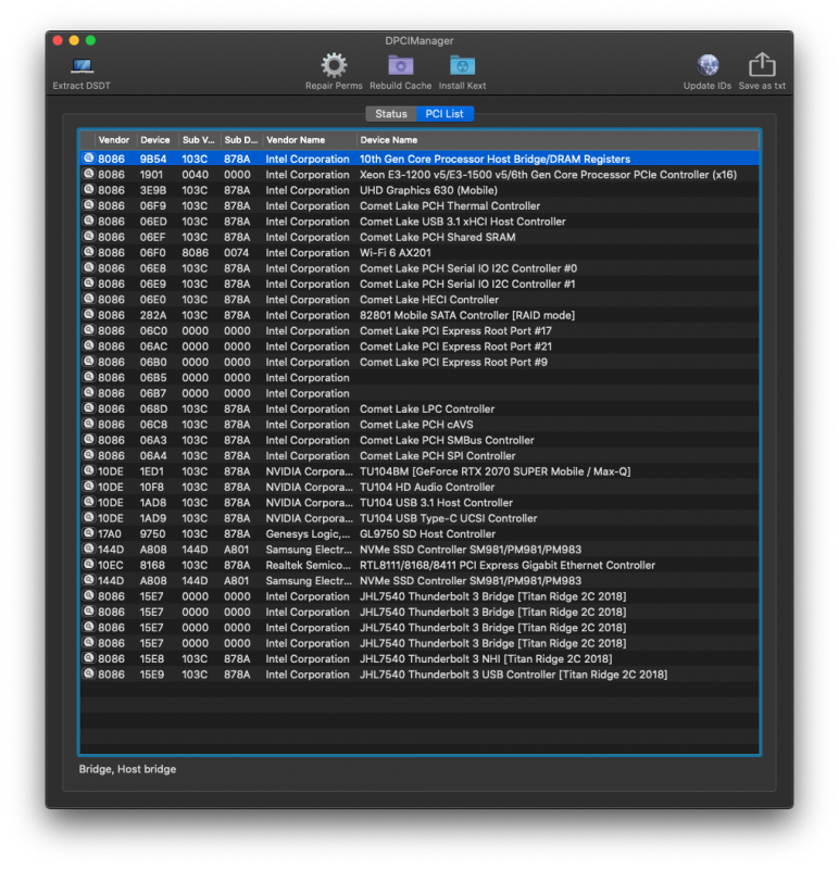 Ciao, non so se sia il caso di aprire un altro topic o rimanere su questo. Io ho lo stesso portatile (cambia solo che io ho la 2070Q). Ho usato il tuo stesso EFI, funziona più o meno tutto (ogni tanto mi si spegne dal nulla e devo ancora capire perchè, ma l'ho acceso da poco). L'unica cosa che non va è il wifi. Ho anche provato a scaricare l'ultimo airportitlwm ma non funge, rimane grigio e se faccio turn-on o turn-off non cambia nulla, e non riesce a trovare alcuna rete
