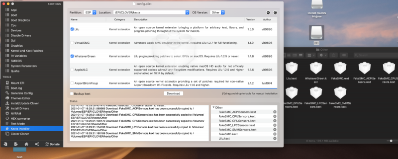 Nel week end sono stato diligente e mi sono letto bene tutta la guida di Gengik84 su come creare la USB bootable e quella di iCanaro su come usare OC (ringrazio molto entrambi!) 🤗 Ho creato la mia usb con l'installazione di Mojave e la mia cartella EFI installando tutti i vari Kexts a me necessari (ho una MB Gigabyte GA-Z97X-UD3H ed un processore Intel i7-4790K CPU @ 4.00Ghz Haswell) e configurando il mio file config.plist. Dopo aver settato il mio BIOS, tutto è partito alla grande (molto veloce e reattivo) e per evitare di dover lasciare la penna usb attaccata ho montato la cartella EFI (con Clover Configurator) sul mio SSD. Mi sono però accorto che funziona tutto (prese usb, audio, etc.) tranne internet. Il computer è collegato alla rete con cavo ethernet (non mi servono ne il wifi ne il bluetooth). Ho controllato sia il router che il cavo (li ho testati con con il MacBook Pro) e funzionano. Nel BIOS credo di aver settato tutto bene e tra i kexts (avendo da specifiche della mia MB una Intel® GbE LAN chip 10/100/1000 Mbit) ho utilizzato un IntelMausi.Kext. Ho provato anche a sostituire il Kext con IntelMausiEthernet.Kext ma senza successo. Ho quindi provato a cambiare nel config.plist, il boolean da FALSE a TRUE ma si è solo incantato il sistema al riavvio.😢 Da cosa può dipendere secondo voi? Grazie